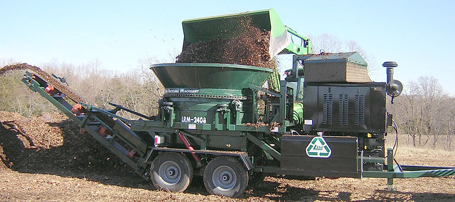Lane Recycling Machinery offers their smaller 2408 tub grinder, designed to be more compact than the larger models in the Lane Recycling equipment line. Just the right size, horse-power, and durability for landscapers and sawmills, pallet mills, and mulch yards. This compact machine is capable of grinding leaves, bark, chips, pallets, pallet material, and green waste up to 8” in diameter with excellent fuel economy (5-6 gal/hr). The tub diameter is 8’ so there aren’t any wide load permit requirements for transport. This grinder is designed to be transported from site to site with a 3/4 ton pickup.